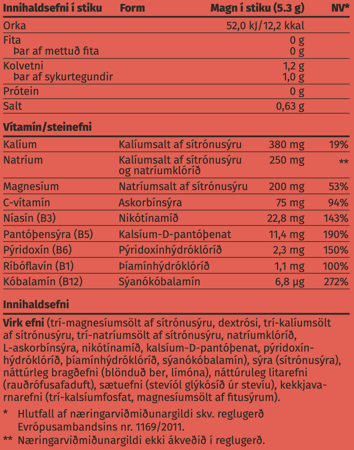 Steinefni eins og natríum, kalíum og magnesíum halda líkamanum í jafnvægi. Þau stjórna vökva í frumunum, styðja við vöðvastarfsemi og hjálpa taugaboðum að berast rétt. Þegar við svitnum, æfum eða svitnum í hita, tapast þessi efni og þá skiptir máli að bæta þau á öruggan hátt.